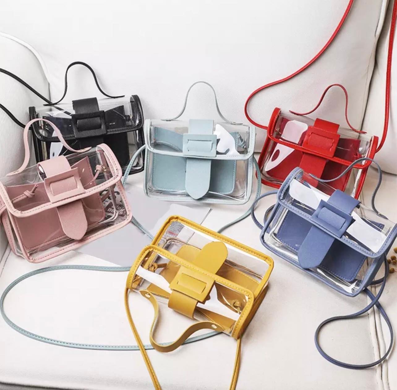 Trendy transparent miniature jelly bags for the every-day, casual look. Perfect for stadiums, concert events, etc.